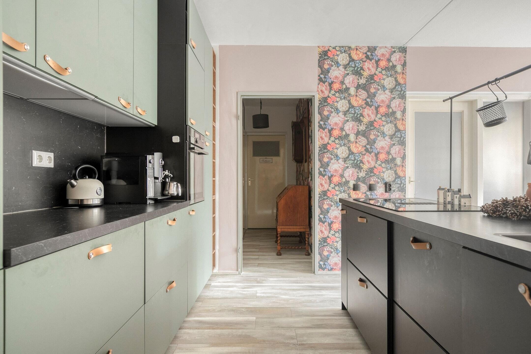 The kitchen (2021) is a real eye-catcher! It's modern and equipped with various built-in appliances.